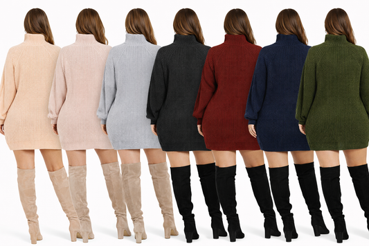 Solid Turtleneck Long Sweater Winter Warm Women Sweater Dress