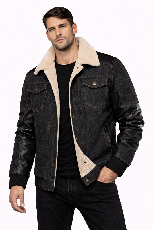 Premium Faux Suede Jacket with Sherpa Collar