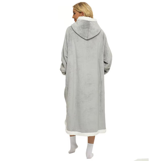 Winter Blanket Extended Vertical Pocket Fleece Lazy Blanket Flannel Lamb Wool Tv Tv Blanket Bathrobe Hooded Nightgown Casual Laz