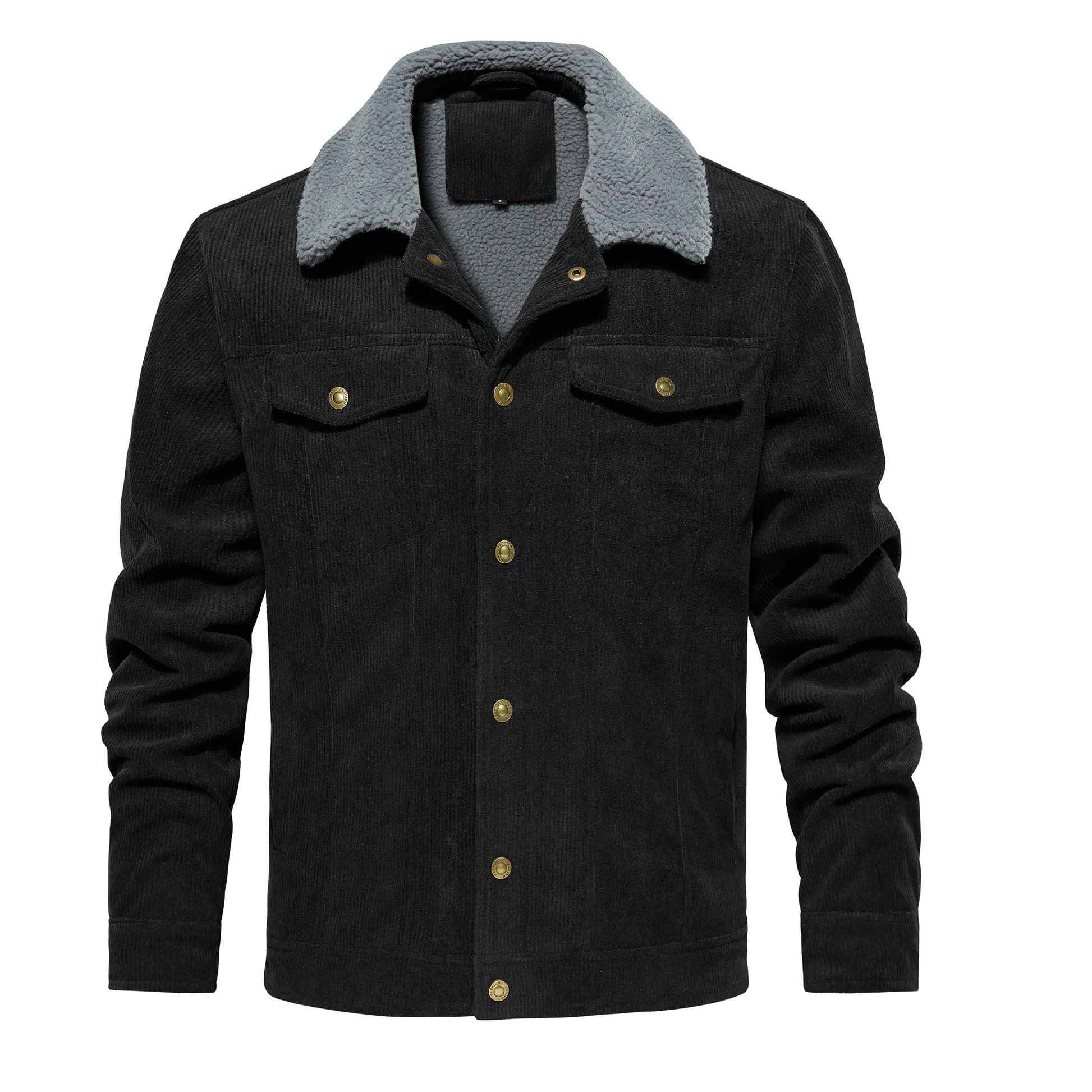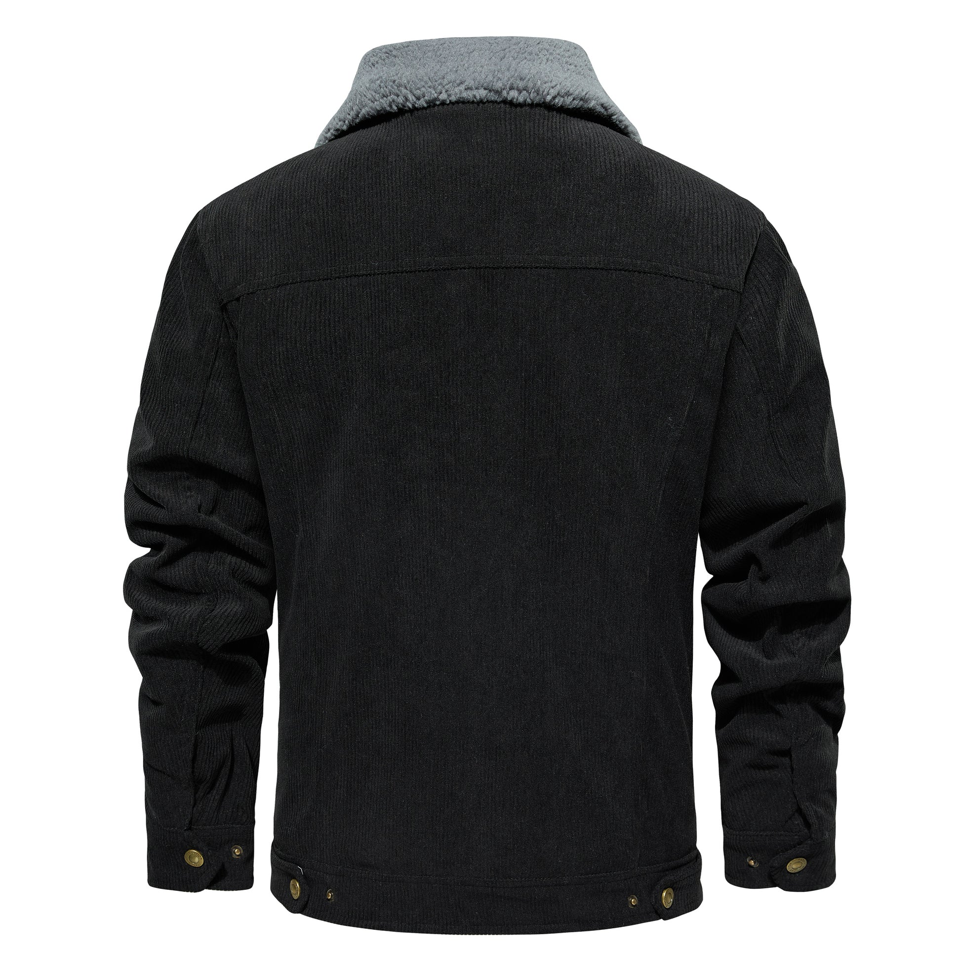 Men's Corduroy Jacket Winter Sherpa Lined Warm Thick Trucker Cargo Coat With 5 Pockets